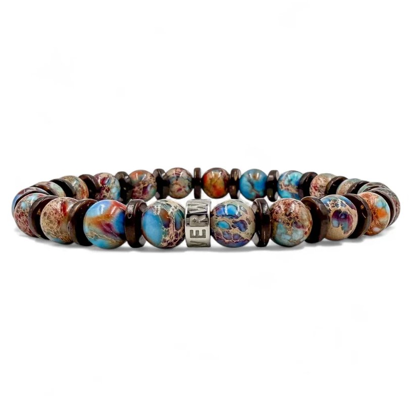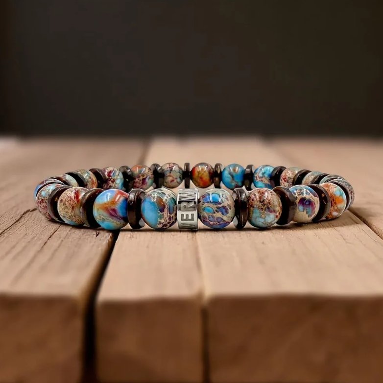 Light it up with Americana Spark—a bracelet that’s all about bold pride and grounded style. Featuring vibrant red, white, and blue tones from Patriot Jasper beads, paired with warm brown coconut wood, this piece captures the spirit of adventure and the grit of American roots. Finished with a polished stainless steel spacer engraved with the EVERWOOD name, it’s a clean and confident nod to freedom and individuality. From backyard barbecues to everyday grind, Americana Spark brings color, character, and timeless edge to your wrist.