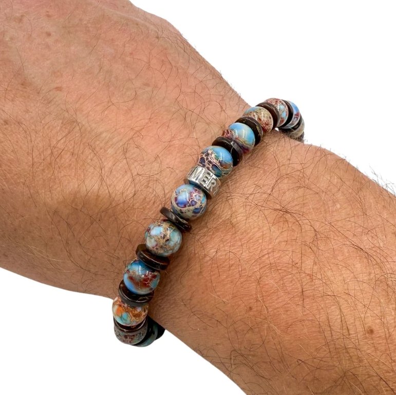 • Premium 8mm Patriot Jasper and Brown Coconut Beads: Carefully selected for their distinctive texture and durability.
